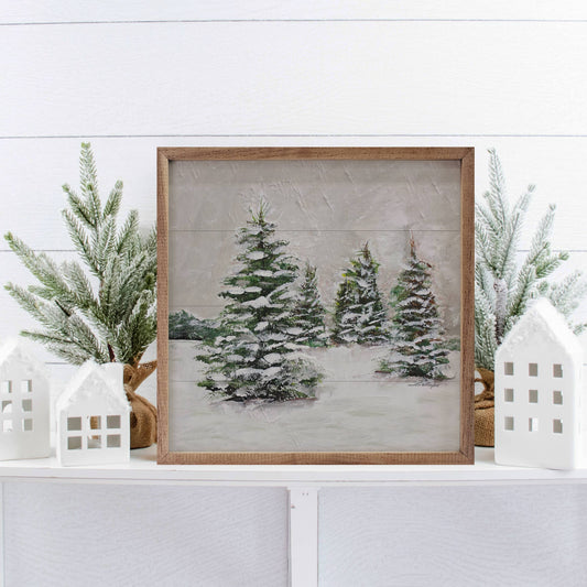 Pines In Snow By Annette Beraud-Battaglia Art Print