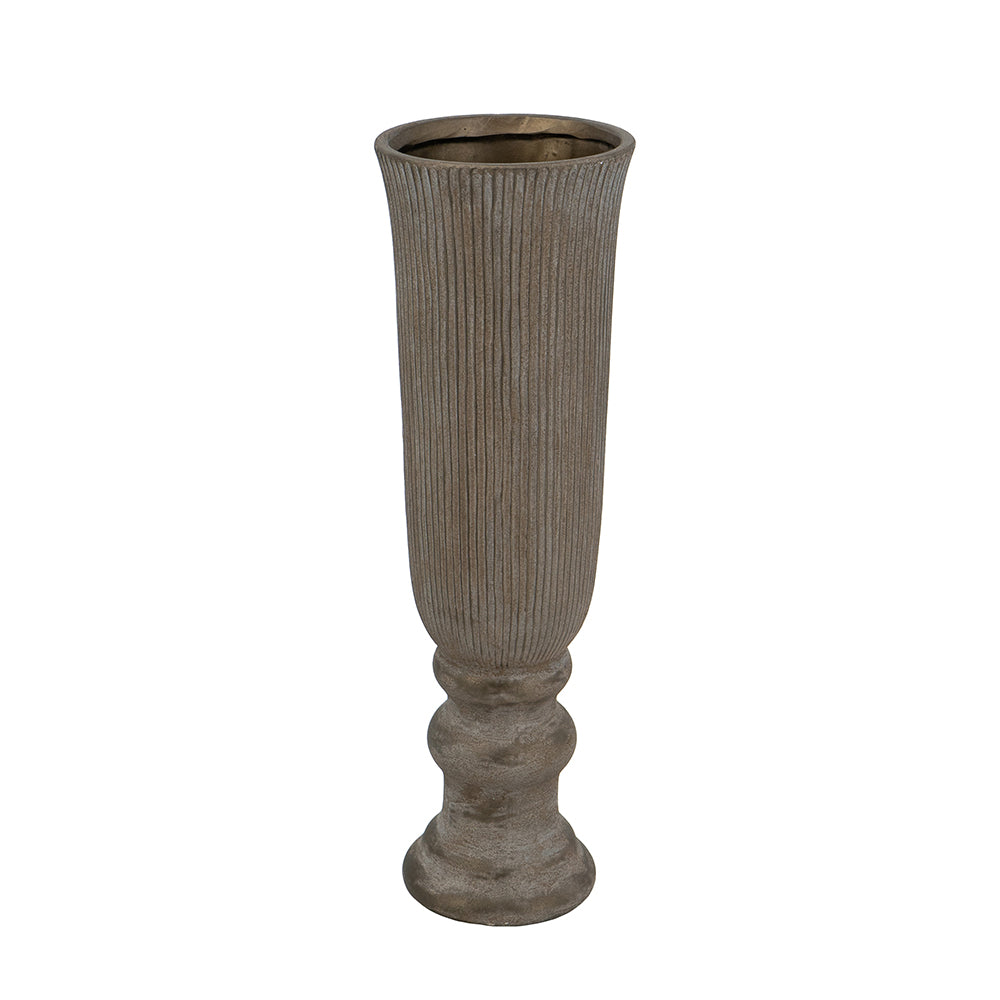 Terracotta Pedestal Vase with Bronze Ridged Design