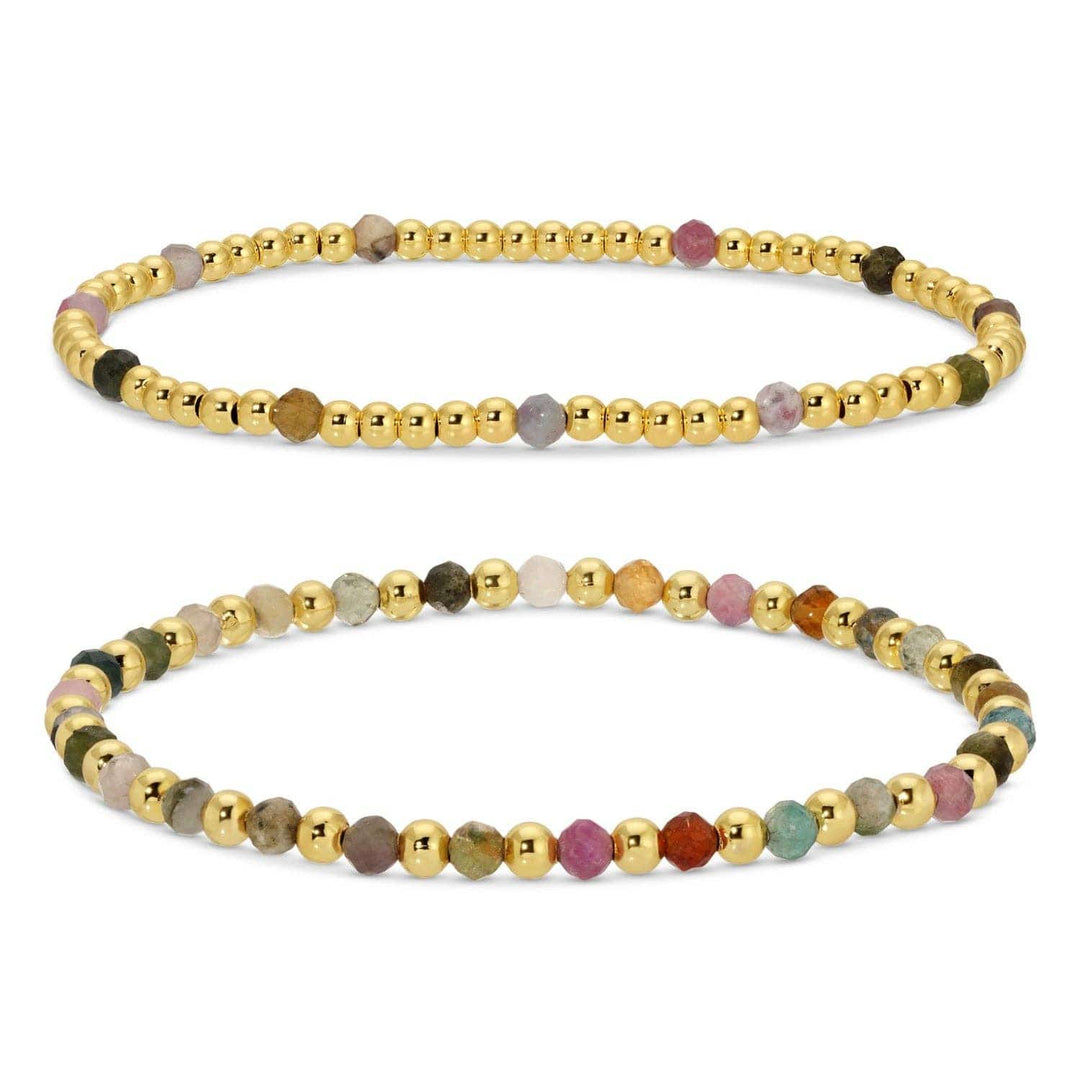 Set/2, 3Mm Bead And Stone Stretch Bracelets
