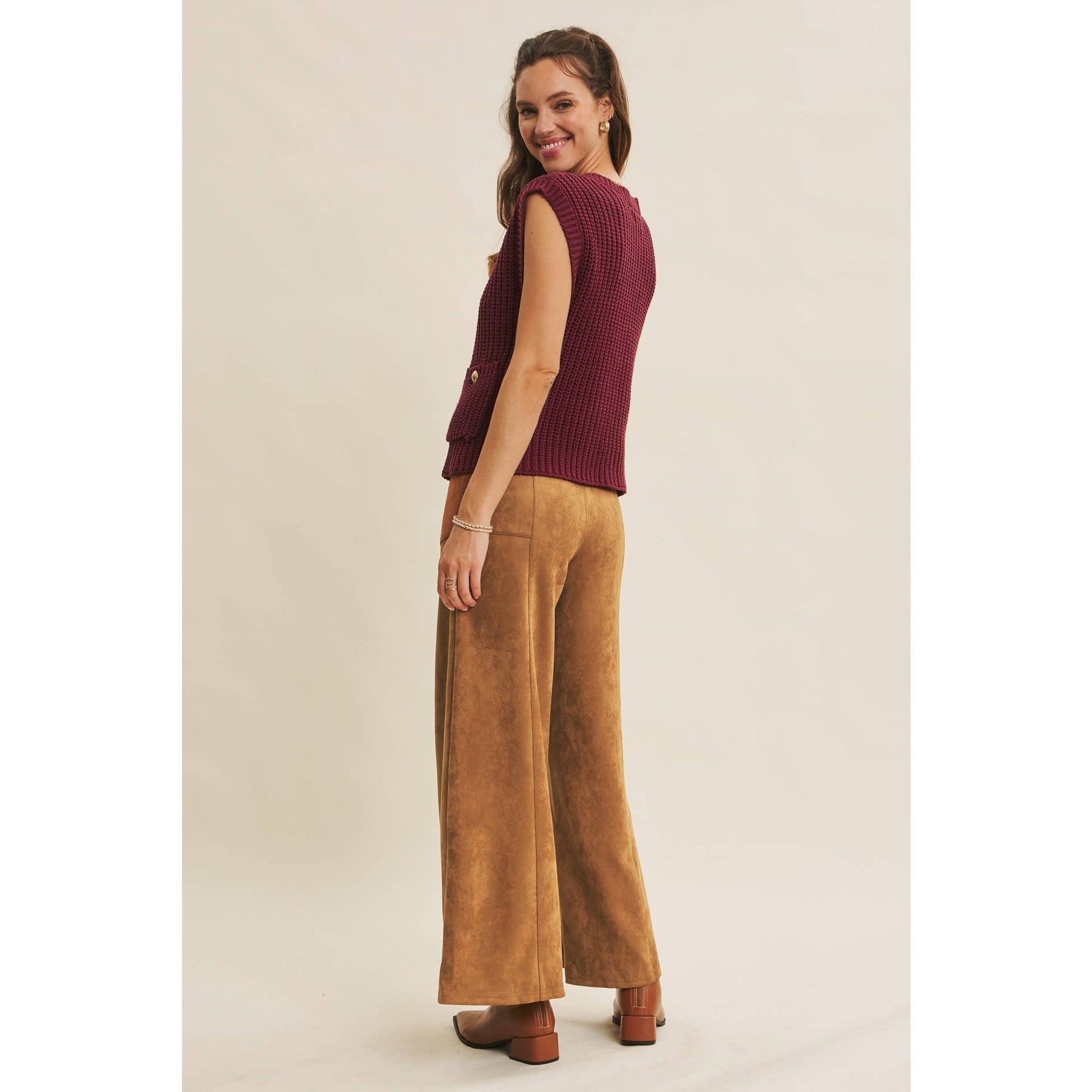 Elevate your FW lineup with these buttery-soft wide-leg pants in a warm camel hue that flatters every skin tone. Crafted from stretchy faux suede, they offer all-day comfort while delivering a polished, elevated silhouette. These pants strike the perfect balance between structure and ease—perfect for tucking in your favorite knits, cardigans, or layered tops. The wide-leg cut elongates the legs and adds subtle drama, while the plush suede texture makes them feel cozy and luxurious. Whether styled with boots and a sweater for a weekend outing or dressed up with a blouse for a casual office day, these pants offer unbeatable versatility. Features - Wide-leg pants - Stretchy suede fabric Size + Fit Model is 5'9.5" and wearing a size Small Please refer to our size chart.