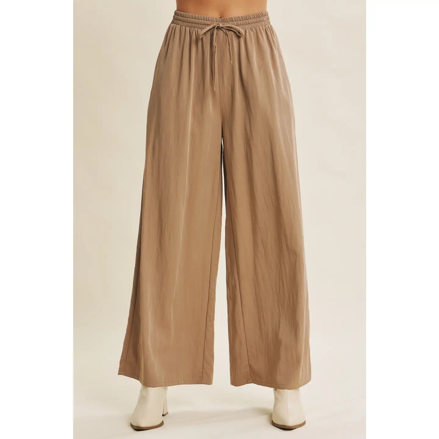 Relaxed, refined, and ready for fall—these washed wide-leg pants blend ease and elegance with every step. Crafted from a soft, breathable viscose blend, they feel light and floaty against the skin, making them a dream to wear in transitional weather. The elastic waistband and adjustable drawstrings offer comfort without compromising style, while the wide-leg silhouette flows effortlessly for a look that's equally polished and laid-back. Ideal for slow mornings, market strolls, or layering into early fall. Whether styled casually or elevated for the office, this versatile pant is bound to become a go-to. Easy to wear, hard to take off—made for movement and mood.
