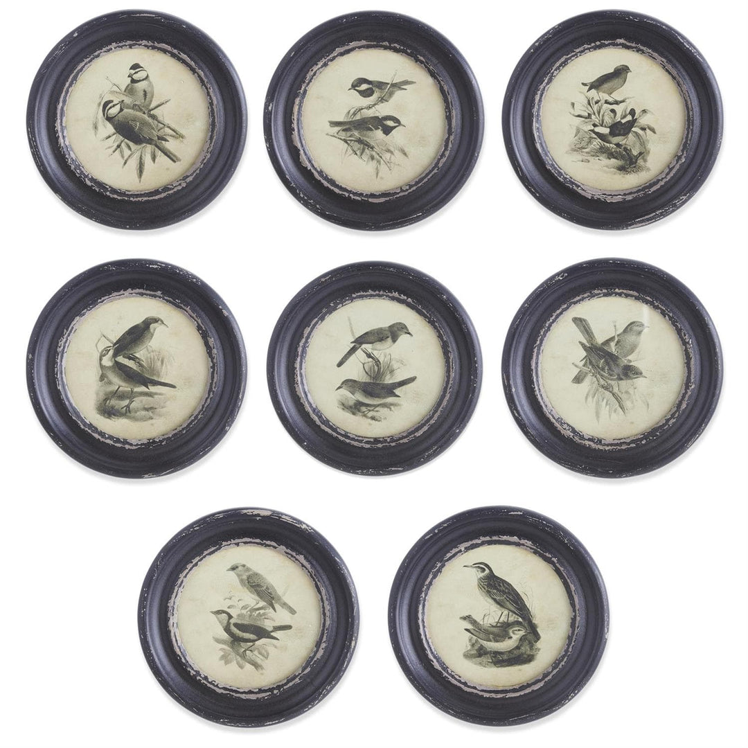 Assorted 9.75 Inch Round Black Framed Bird Prints