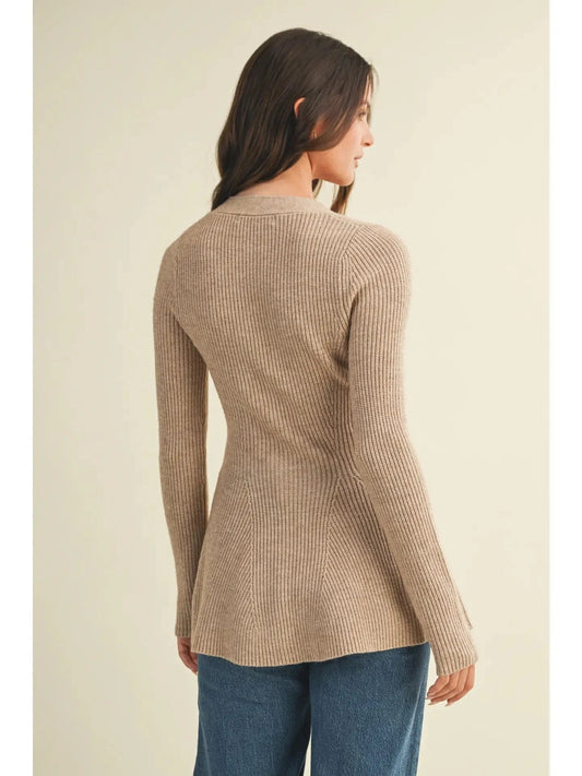 V Neck Hourglass Sweater Cardigan in Wheat