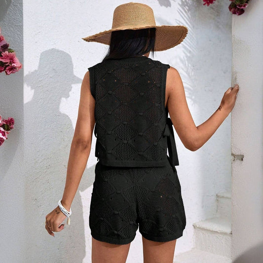 Sleeveless crochet knit set black 00946