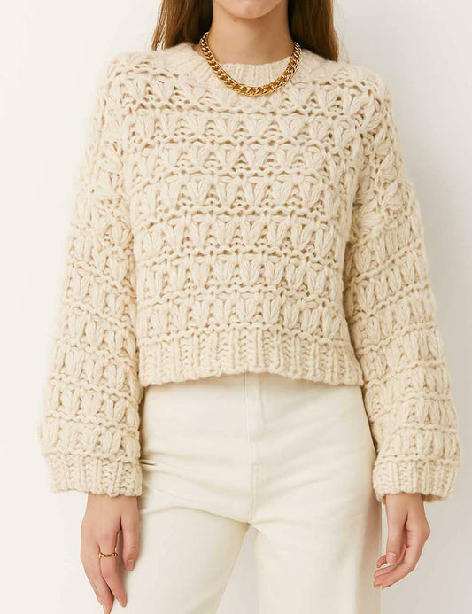 Chunky Knit Balloon Sleeves Sweater Top