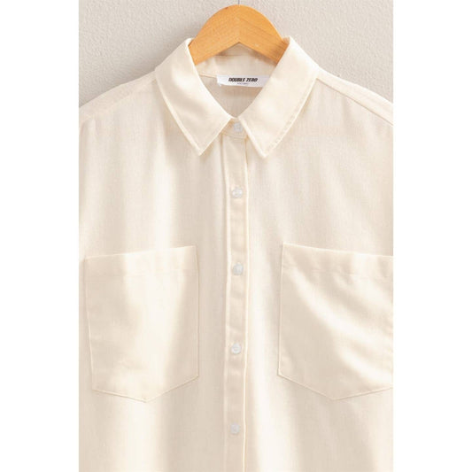 Crinkled Button-Down Oversized Shirt with Dolman Sleeves