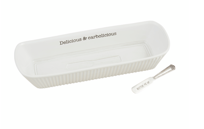 The Ceramic Bread Basket Set is a charming and functional addition to any dining table. This 2-piece set features a beautifully crafted fluted ceramic bread basket, designed to elegantly present your favorite breads, rolls, or pastries. The basket includes an interior groove specifically designed to hold the accompanying stamped silverplate spreader, ensuring it is always within easy reach. The dish measures 5 inches by 15 inches, providing ample space for a variety of baked goods, while the spreader, measuring 5 1/2 inches, is perfect for effortlessly applying butter, jams, or spreads. Made from high-quality dolomite, this set combines durability with a classic aesthetic, making it a perfect choice for both everyday use and special occasions.