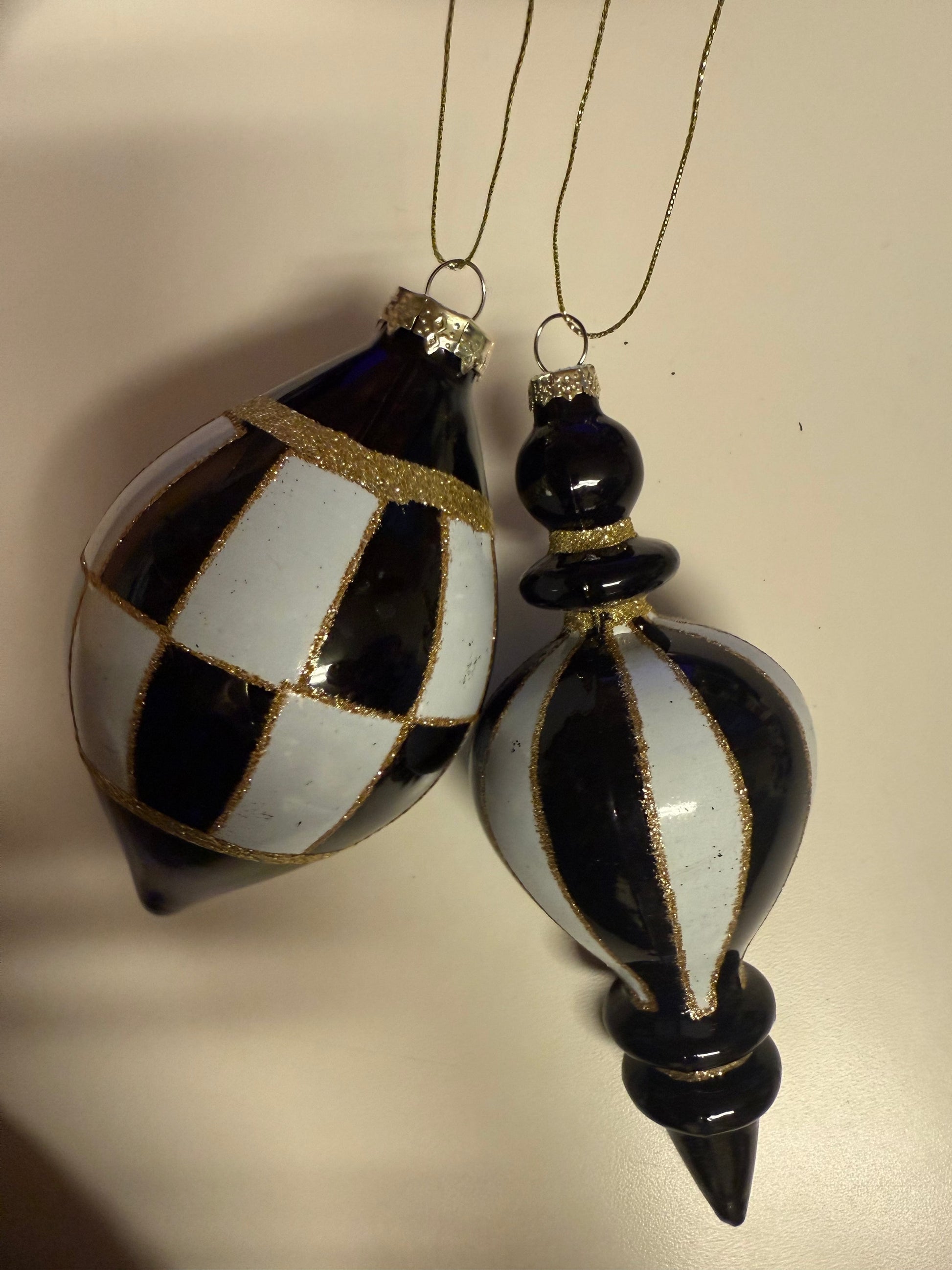 Asst Glass Finial B&W Harlequin