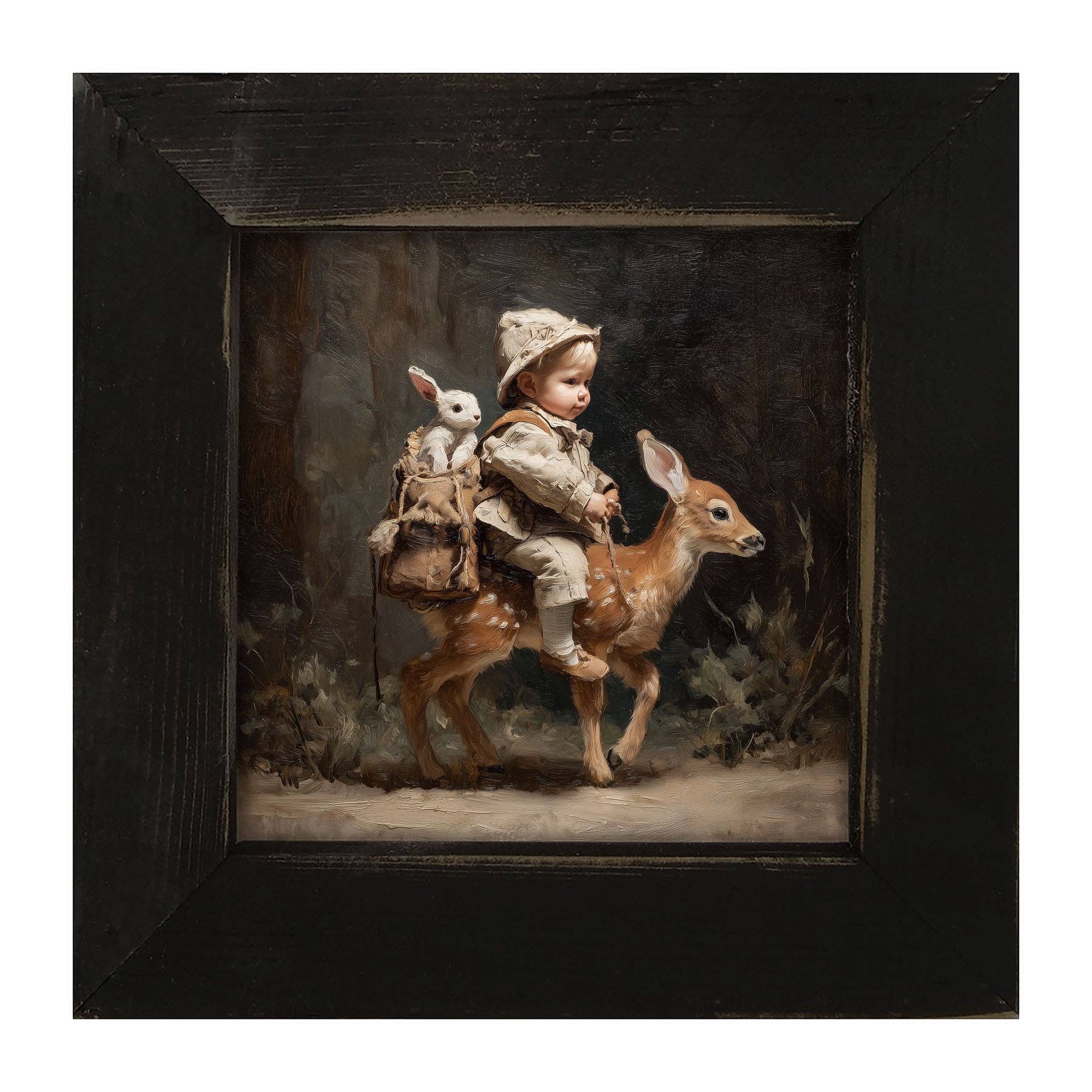 The print: We first print each image on high quality matte art paper. Once the image is printed, It is permanently mounted to hardboard. The size: small 8" x 8" Large 14" x 14" XL 25" x 25" The frame: The frame is made from reclaimed barnwood or or wood cut from century old mills in upstate New York. It is made entirely from scratch, cut from raw lumber. We keep the character of the saw cuts when possible. Then paint and sand each piece by hand. The assembly: The mounted print is then stapled to the frame creating a durable frame that will last for many years. Each frame will have 1 loop or 2 loops and a hanging wire to hang it with. Details: • Ready to hang ........The print is mounted with permanent adhesive to 1/8" thick masonite hardboard and attached to the frame.......