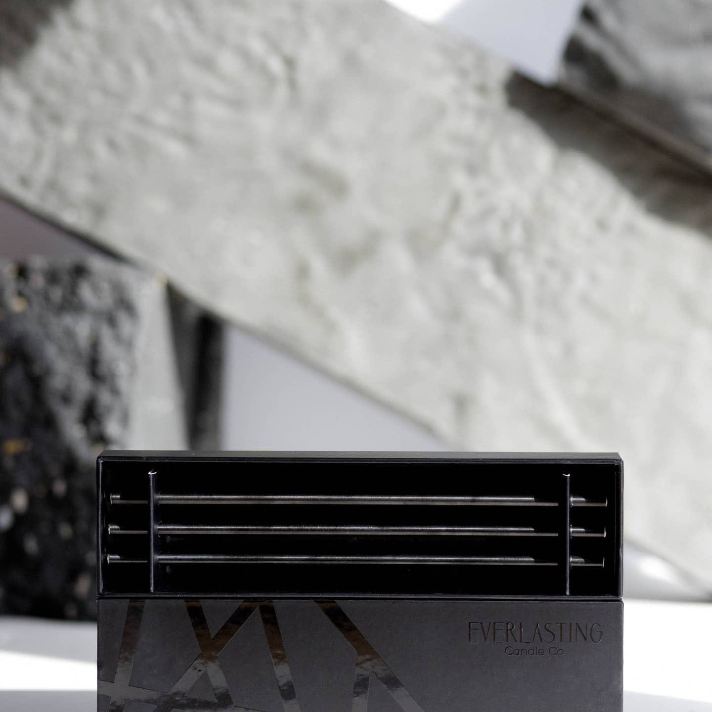 The Black Everlasting Candle. Its smooth matte finish and timeless black design make it a versatile décor piece that complements any home style. This reusable steel oil candle is clean-burning, soot-free, and doesn’t melt down. It pairs with the Pristine Oil® and Everlasting Vase (both sold separately) to create a complete, elegant candlelight experience. Why you'll love it: *Sustainable, reusable design resonates with today’s eco-conscious consumers *Encourages repeat sales with Pristine Oil® refills *A thoughtful gift for any occasion for the person who has everything *Adds timeless ambiance to everyday moments How to Use: 1. Fill the vase with Pristine Oil® 2. Insert Everlasting Candle sticks 3. Light for elegant, smoke-free candlelight ambiance.