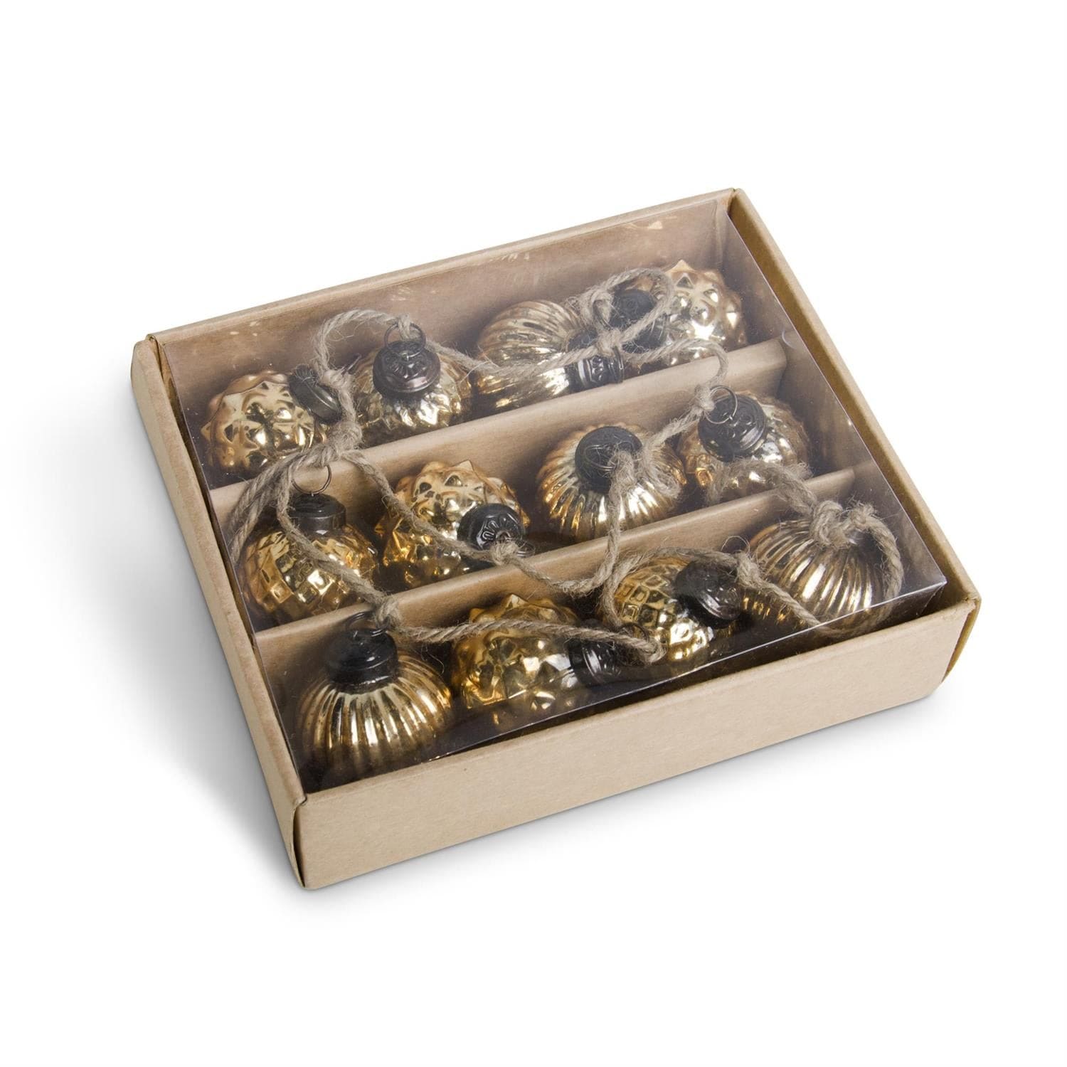 Box of 12 Mini Gold Mercury Glass Round Ornaments