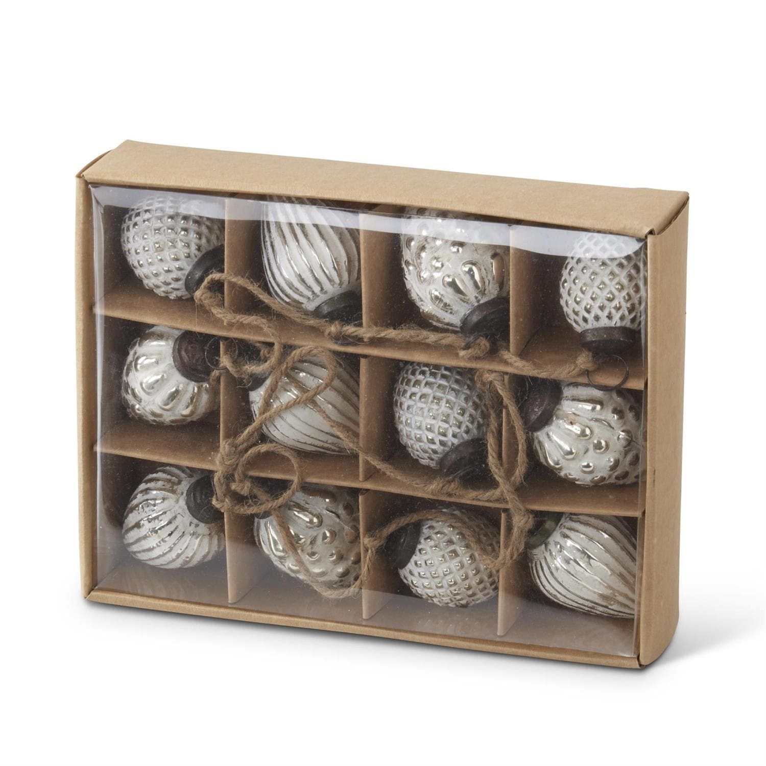 Box of 12 Mini Whitewashed Mercury Glass Round Ornaments