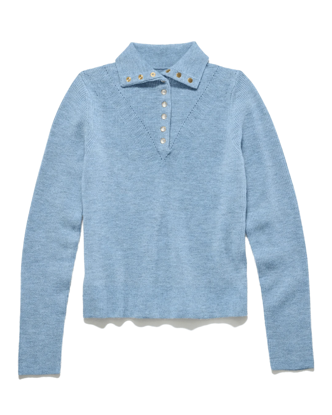 The Castleberry Mock Neck Sweater is one of those pieces you'll reach for constantly once it's in your closet. It has a slightly elevated mock neck with a partial placket and gold-tone pearl snaps, so you can wear it buttoned up for a polished look or open and relaxed depending on your mood. The soft knit has a really subtle heathered texture that makes it incredibly easy to style with just about anything in your wardrobe.