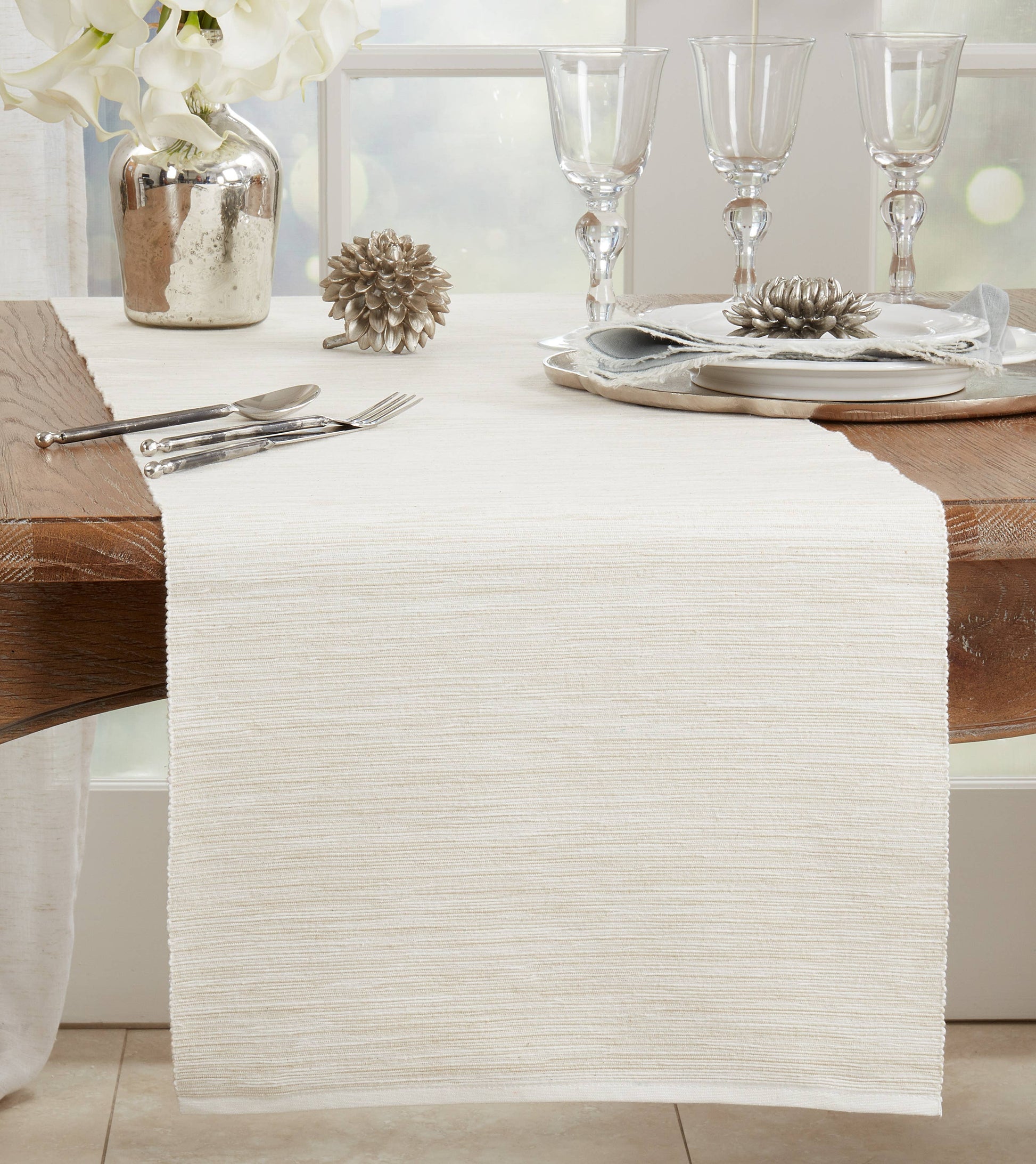 If you're looking for an everyday runner that can still style up the look and feel of your tabletop, then you can't go wrong with this Classic Design Table Runner. Made with 100% cotton, it delivers great durability and softness, while its casual style makes sit easy to pair with a wide range of dinnerware. Season: Every day.