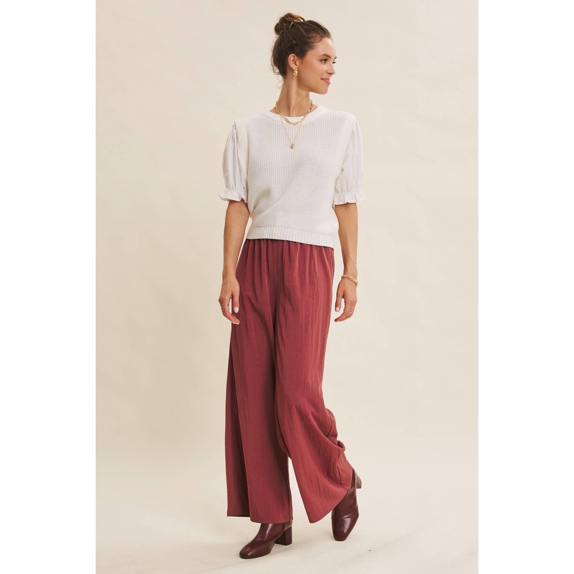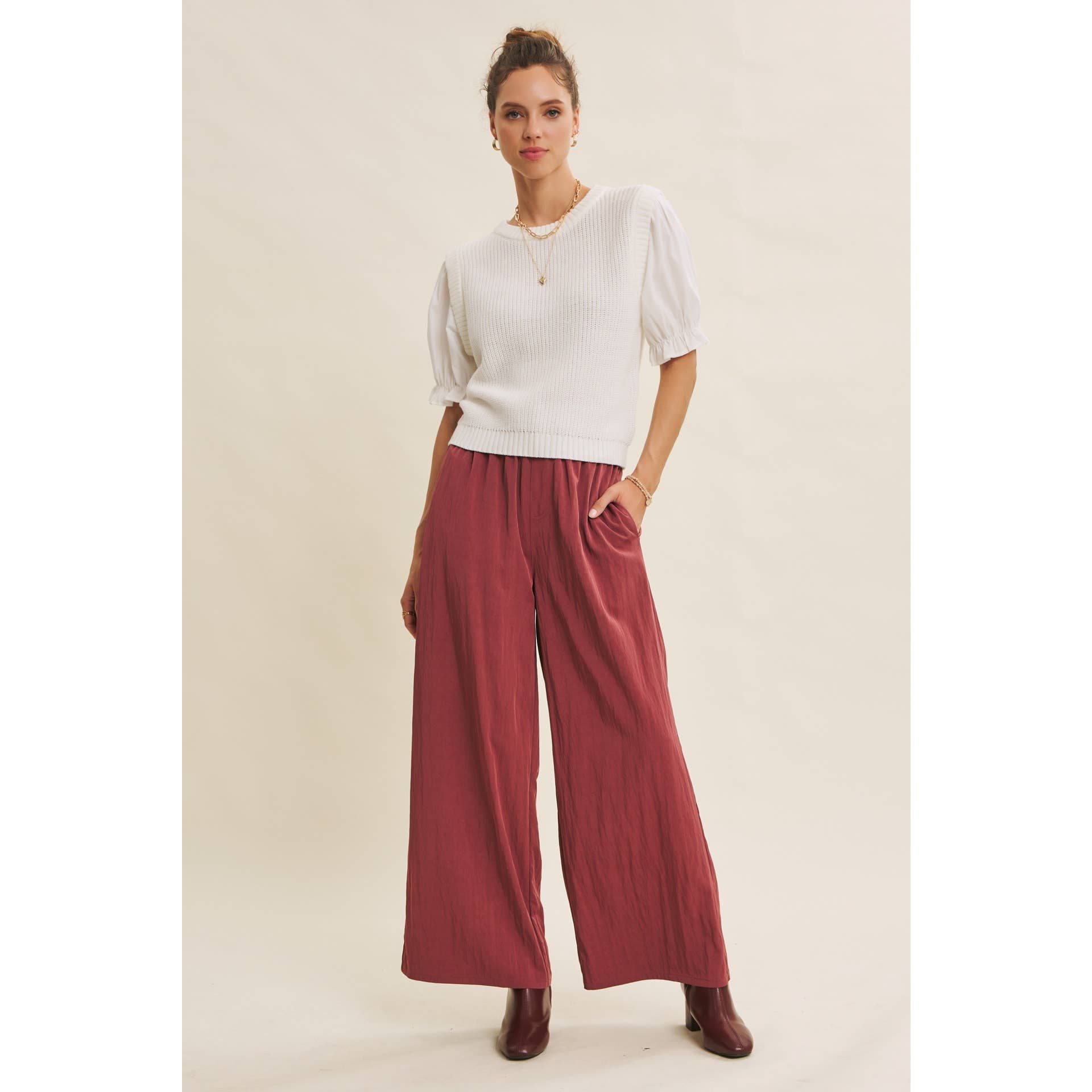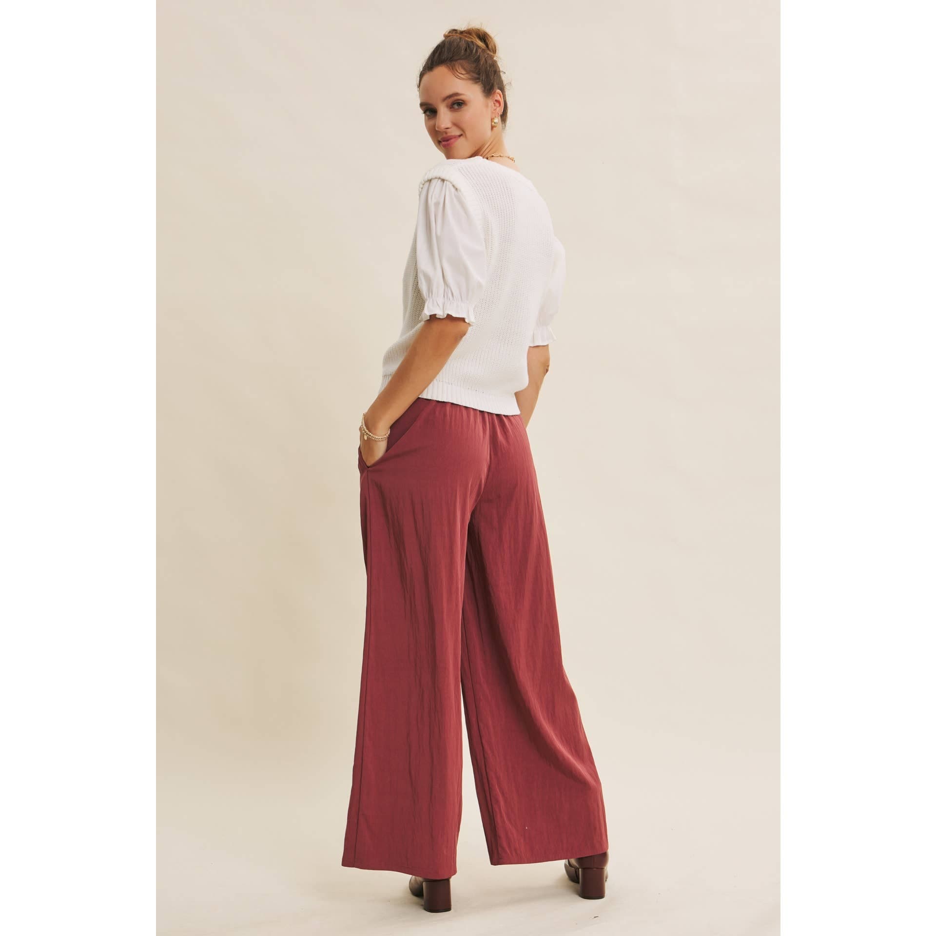 Relaxed, refined, and ready for fall—these washed wide-leg pants blend ease and elegance with every step. Crafted from a soft, breathable viscose blend, they feel light and floaty against the skin, making them a dream to wear in transitional weather. The elastic waistband and adjustable drawstrings offer comfort without compromising style, while the wide-leg silhouette flows effortlessly for a look that's equally polished and laid-back. Ideal for slow mornings, market strolls, or layering into early fall. Whether styled casually or elevated for the office, this versatile pant is bound to become a go-to. Easy to wear, hard to take off—made for movement and mood. Features - Airy lightweight viscose blend fabric - Elastic waistband with adjustable drawstrings - Washed look - Wide-leg pants - Side pockets Size + Fit Model is 5’9.5" and wearing a size Small Please refer to our size chart.