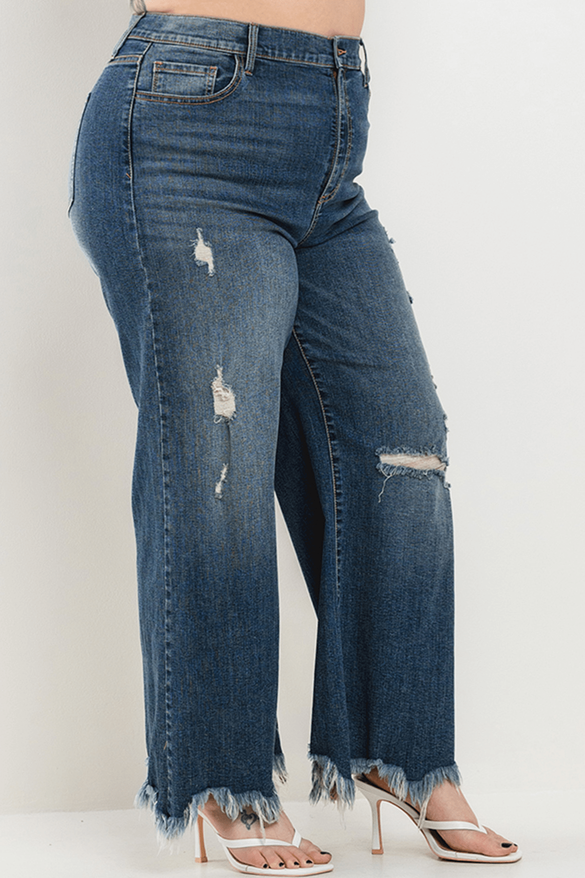 High Rise Distressed Cropped Wide Leg Jeans - Plus