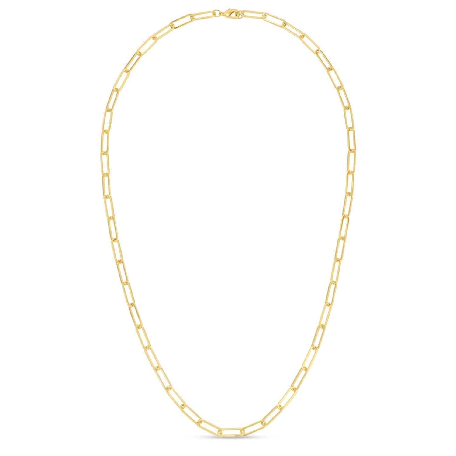 This Large link chain is perfect for flying solo or doubling up for a fabulously layered look (it's chain-mazing!). -Available in 16" and 24" -18k Gold Plated -Brass Base