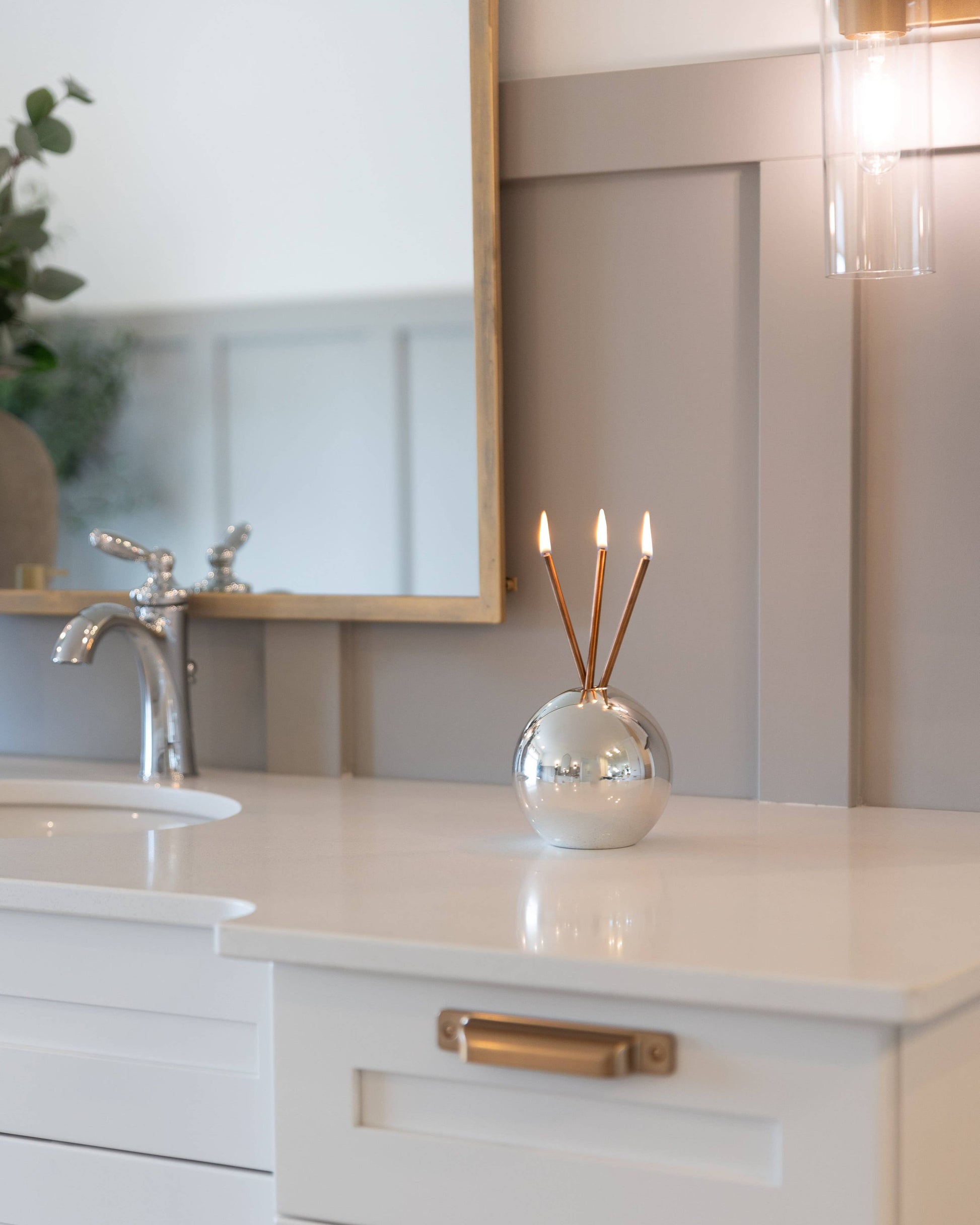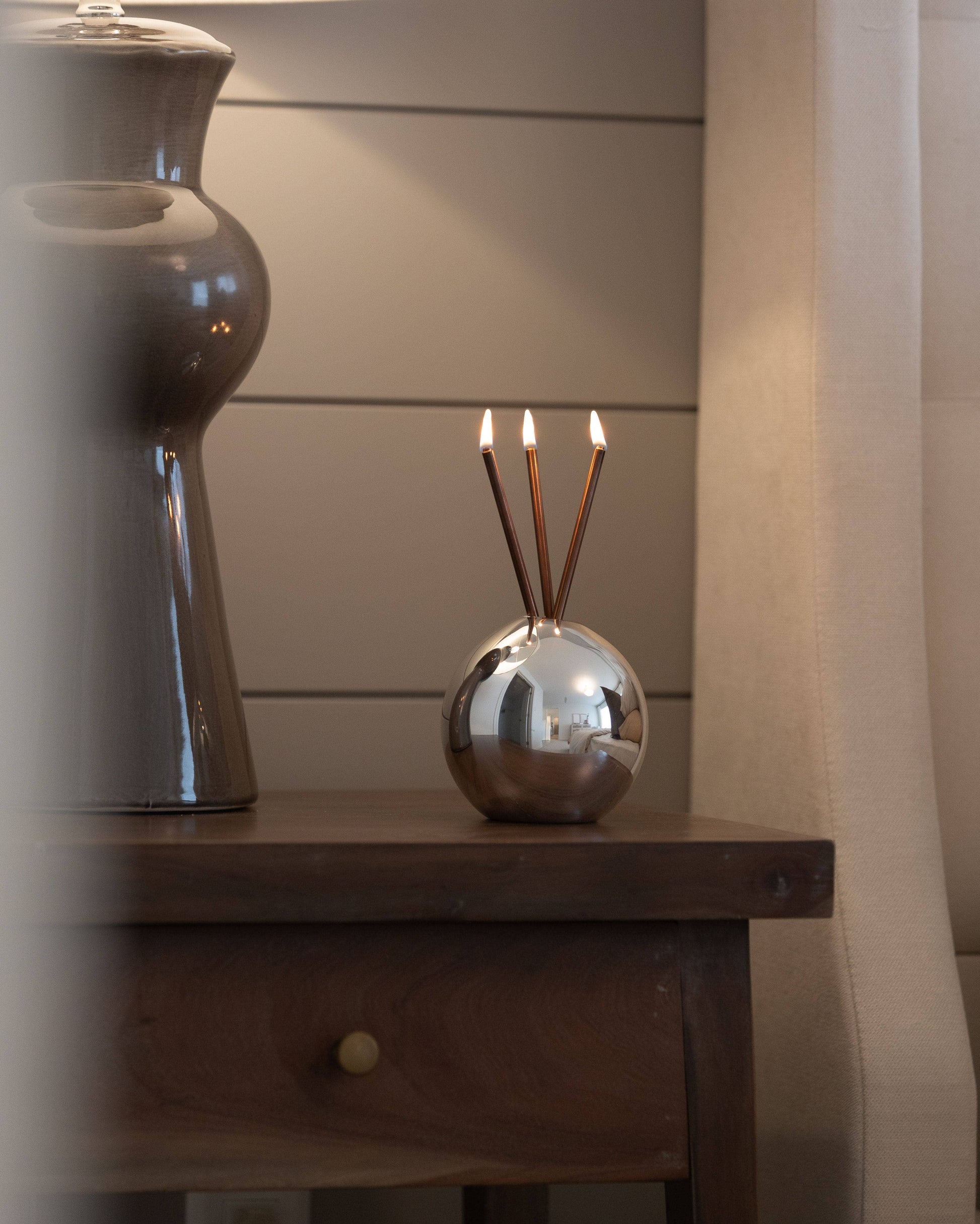 The Silver Metallic Neva stands as a bold statement piece, destined to be the talk of the room with its eye-catching shimmer and sleek allure. It has a minimalistic yet bold and beautiful presence. Crafted from hand-blown borosilicate glass, this vase is designed to hold Pristine Oil® and Everlasting Candle sticks (both sold separately) to complete the timeless candlelight experience. Why you'll love it: * Sustainable, reusable design resonates with today’s eco-conscious consumers * Encourages repeat sales with Pristine Oil® refills * A thoughtful gift for any occasion for the person who has everything * Adds timeless ambiance to everyday moments * 100% recyclable packaging How to Use: 1. Fill the vase with Pristine Oil®. 2. Insert Everlasting Candle sticks. 3. Light for elegant, smoke-free candlelight ambiance. A unique product your customers will adore.