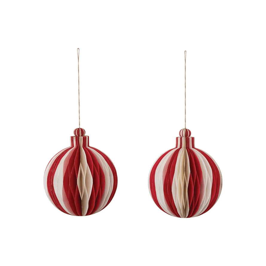 Paper Folding Honeycomb Ornament w/ Gold Glitter Edge, Cream Color & Red