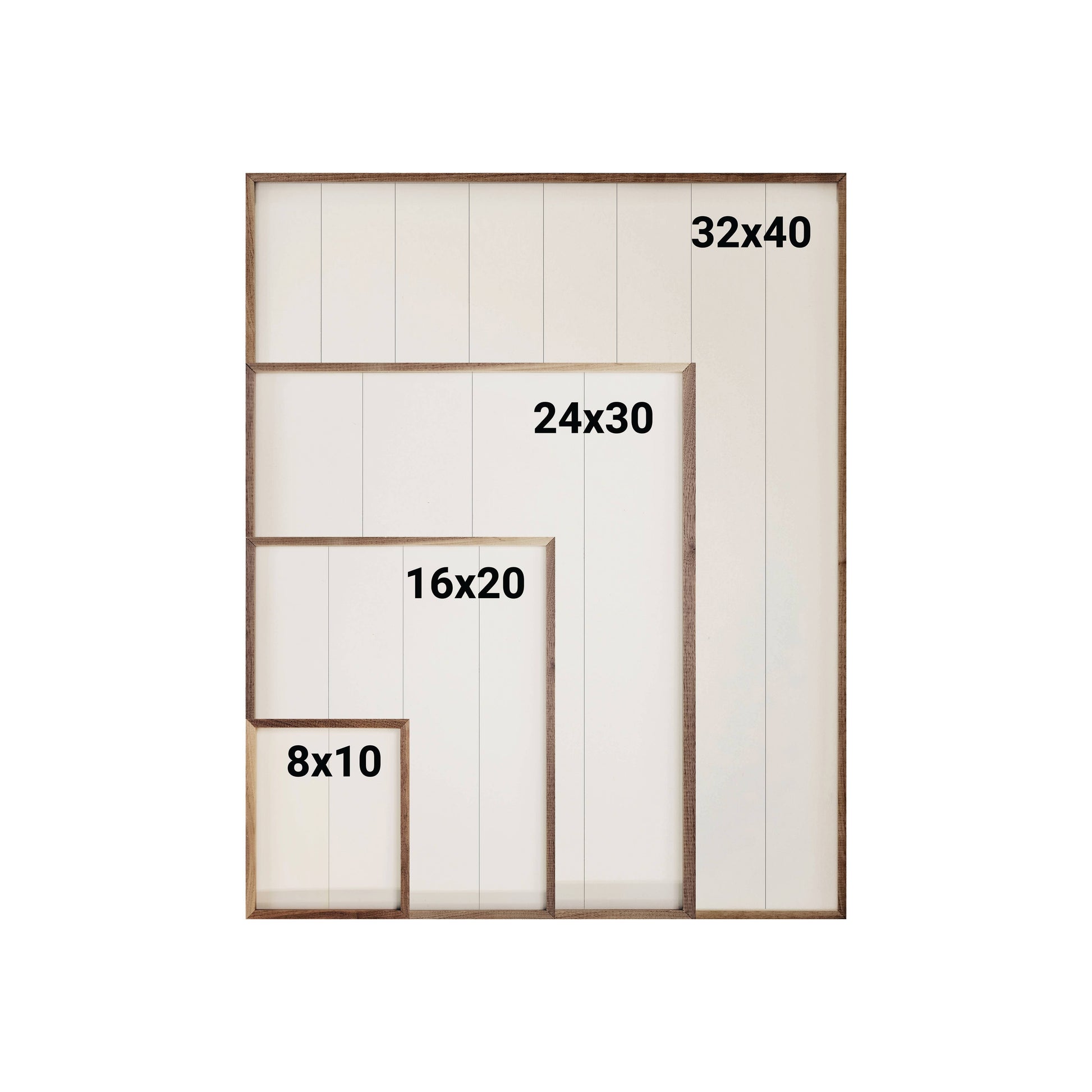 This unique piece is a simple way to bring beauty and charm to any wall or shelf within the home. It is made from high quality American hardwood planks with a hand painted face, and printed with UV cured ink, and is framed in a natural walnut frame. Each piece is unique with its own personality, marks, wood grain, and look. Easy to clean with a dry cloth.
