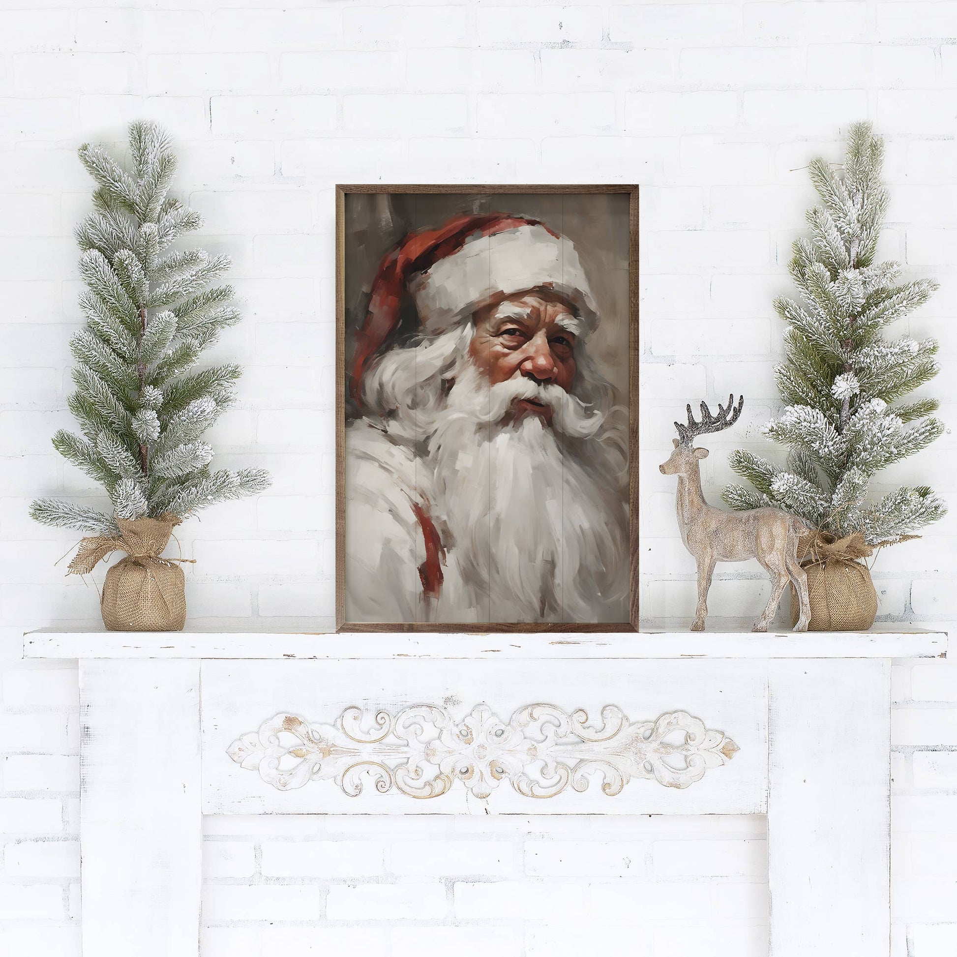 Santa Portrait In White Art Print