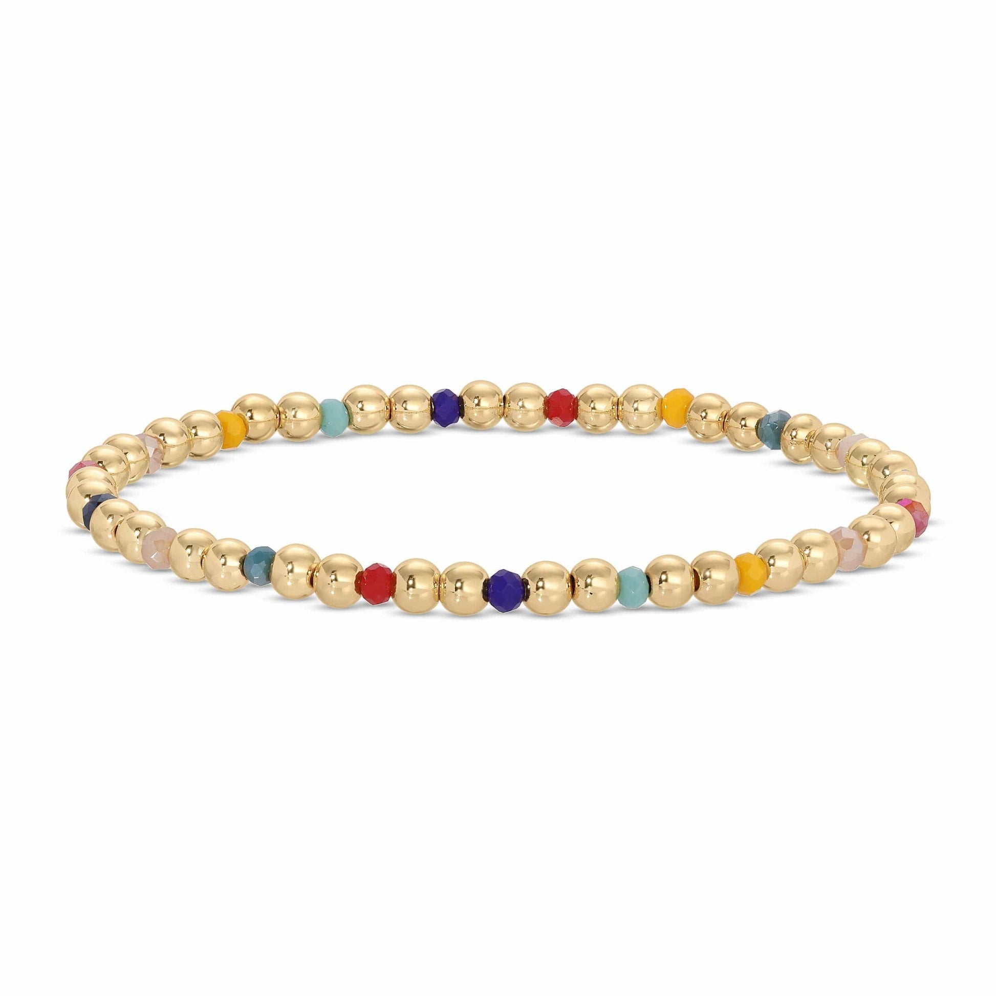 Set/12 Gold Bead Bracelets with colorful crystal accents Glass Crystals 18k Gold Plated Brass Base Glass Crystals - Colors may vary