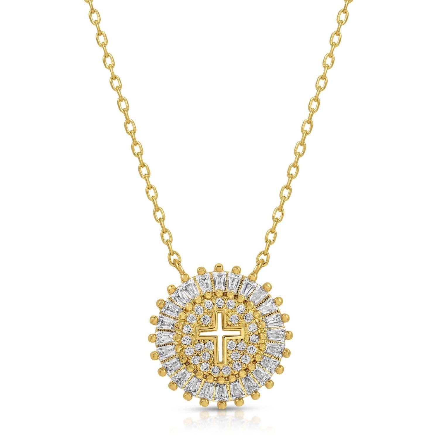 Illuminate your faith with brilliant sparkle with our "Shimmering Cross Necklace!" This exquisite piece beautifully combines timeless spiritual symbolism with dazzling modern brilliance, making it a radiant statement of belief and style. The focal point of this captivating necklace is the cross pendant, completely adorned with shimmering cubic zirconia (CZ) stones. These sparkling faux diamonds are expertly set to catch and reflect light with dazzling intensity, ensuring the cross truly shimmers with every movement. This vibrant sparkle elevates the classic symbol, making it a standout piece. The cross itself is a universal emblem representing hope, faith, and protection, offering both comfort and inspiration. 16" Necklace .6" Pendant 18k Gold or Rhodium Plated Brass Base Cubic Zirconia