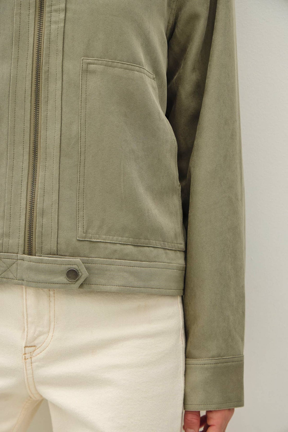SUEDE FEEL COLLARED ZIP UP JACKETS