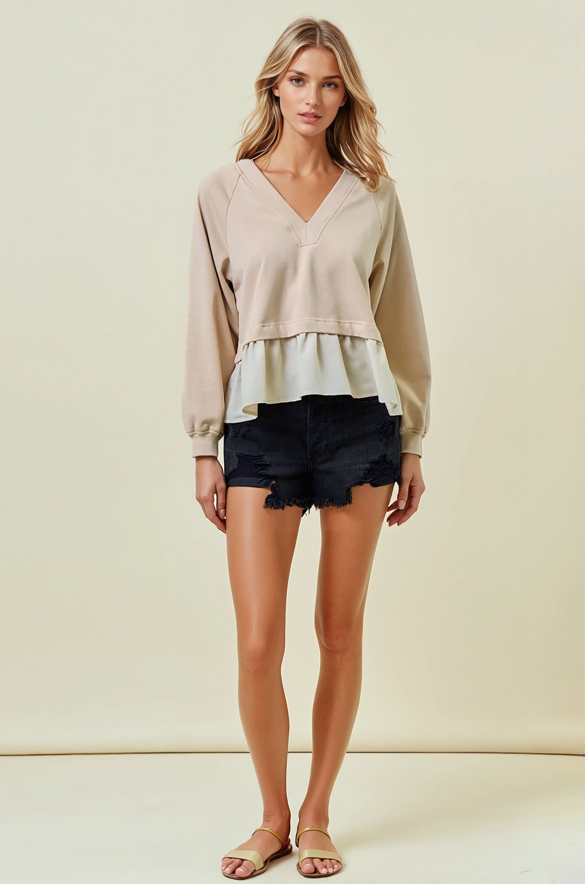 SWEATSHIRT TWOFER V NECK TOP