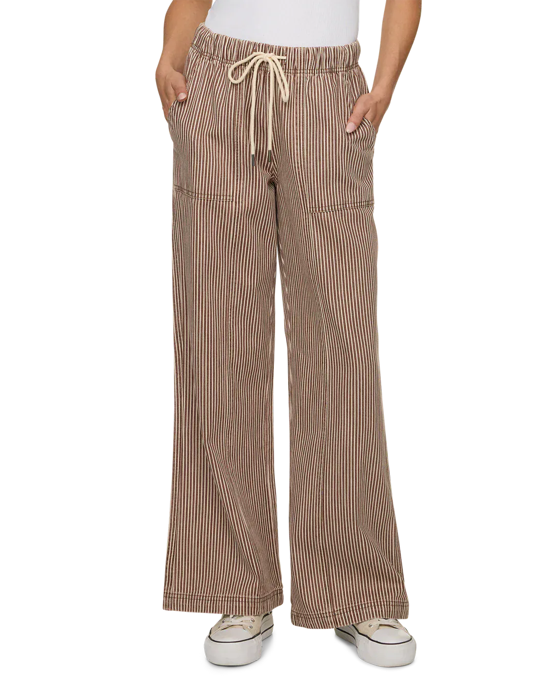 Crafted from a cotton-elastane blend with subtle texture, the Triana Lounge Pant delivers polished comfort without compromise. The drawstring waistband and wide-leg silhouette provide relaxed ease, while vertical striping and front patch pockets elevate the everyday aesthetic. Designed for those who refuse to sacrifice style for comfort—wear them anywhere with confidence. Small: 23.5" leg opening. 99% Cotton | 1% Elastane.